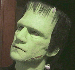 Remember, it's not a mask, it's a prosthetic makeup -- it's not over my head, it's glued and painted on my face. I think this is about as much like Boris Karloff's classic Monster as I'll ever look, given how different my facial structure is from his. Still, I think it's pretty obvious who it's supposed to be.