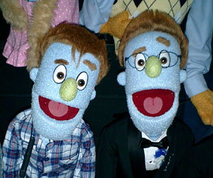At right are two versions of Rod, the closeted gay Republican investment banker. Both of these puppets were also used in the original off-Broadway production. It's absolutely amazing that they've held up so well! |